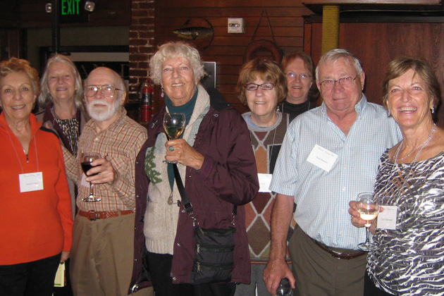 Enjoying the NorCal lunch in Berkeley are Joyce Capice, Betty Matthews, Jim Kaumeyer, Connie Diernisse, Susan Hall, Janet Holl, Nick Bowleo and Carol Desmond.