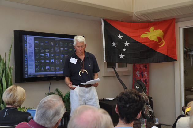 Gloria McCoy shows slides from a journey to Papua New Guinea.